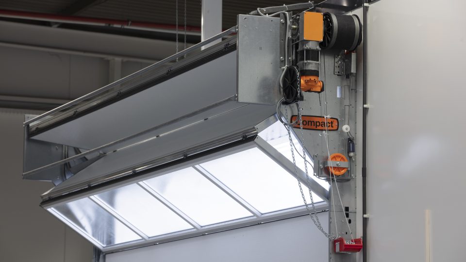Do you have a crane track, installations around the door or want to achieve more working height? Then the Compact door is your solution.