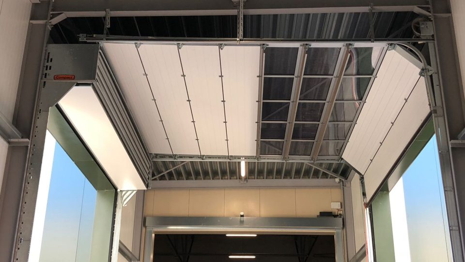 Benefit from the unique space-saving industrial door that fits all spaces and every design, even when other sectional doors cannot be used. The Compact™ industrial door is compact and versatile thanks to its vertical folding system without overhead rails.