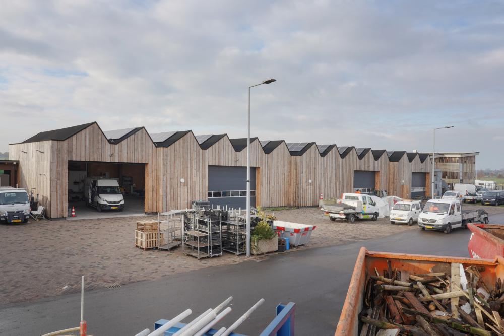 The municipal yard of Nieuwveen has set itself the goal of setting an example in the field of sustainable management of public space with this circular municipal yard. The unique building is built entirely of wood and has a varied finish of recycled materials. The elongated building has a reptilian shape with a head, body and tail. The striking facade consists of Accoya wood and slats of recycled wood with different thicknesses and colour tones. In addition, special sectional doors close off the Nieuwveen municipal yard.
