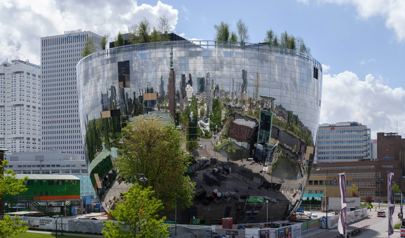 The building has a lot to offer both inside and out. Not only the reflective panels of the facade are an eye-catcher, the doors within the building are also unique. The facade of the 40 meter high building is completely covered with reflective panels that reflect the skyline of Rotterdam. In this building, art that cannot be found in the art museum proper next door is stored and at the same time made accessible to the public.