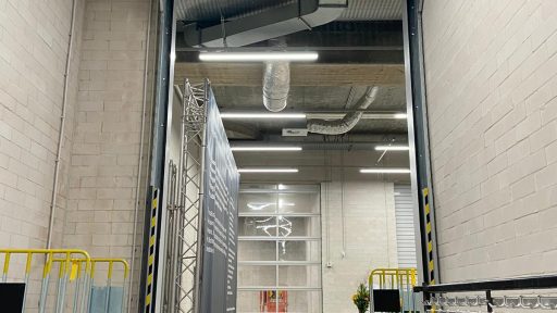 The 4.5 meter high sectional doors are custom made for this project and composed of Full Vision panels, so that users have a good view of oncoming people and an open atmosphere is created.